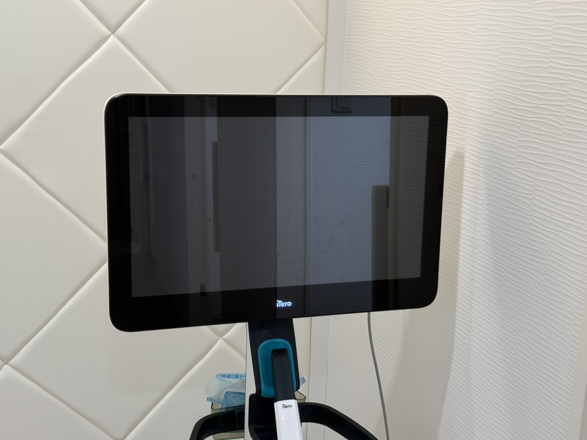 iTeroは、口の中を小型のスキャナーでなぞるだけで、瞬時に精密な3Dデータを取得できます。粘土も、トレーも、待ち時間も不要です。スキャン後すぐに画面上でデータを確認でき、その場でシミュレーションの確認まで進められます。